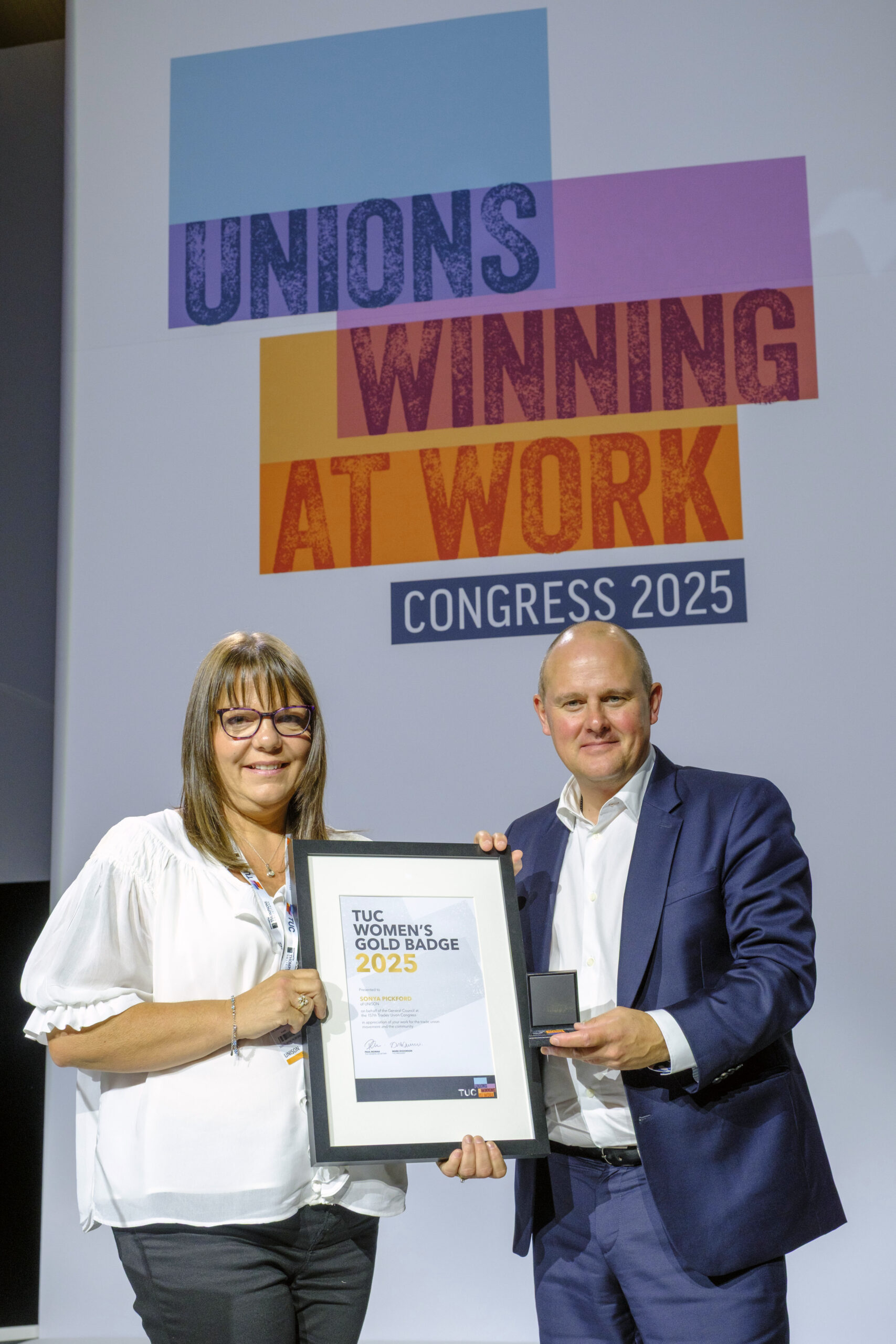 Sonya Pickford, UNISON Derbyshire’s Children’s Convenor and Health & Safety Lead, has been awarded the TUC Gold Medal, presented at the TUC Congress in Brighton on Tuesday 10 September.