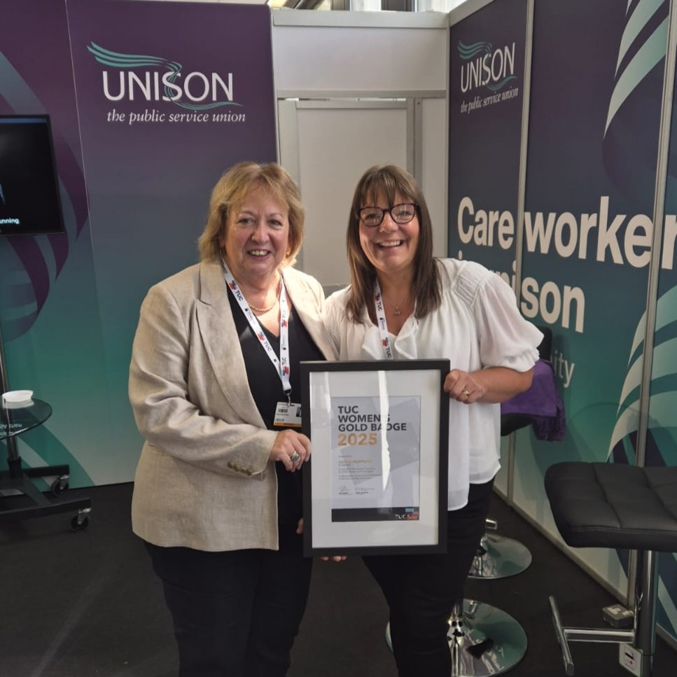 I am humbled and honoured to be awarded the TUC Women’s Gold Badge award. I don’t feel I ever did anything other than what should be done. I always try to be there for the members, as sometimes they can be going through very stressful situations.I work with a great team at Derbyshire UNISON and have had the most fantastic role models in Branch Treasurer Jayne Barry and Retired Members Officer Lesley Whetton. They were there for me when I started out as a rep and continue to support me. The Derbyshire Branch of UNISON are an amazing bunch of people, who all work extremely hard supporting our members.